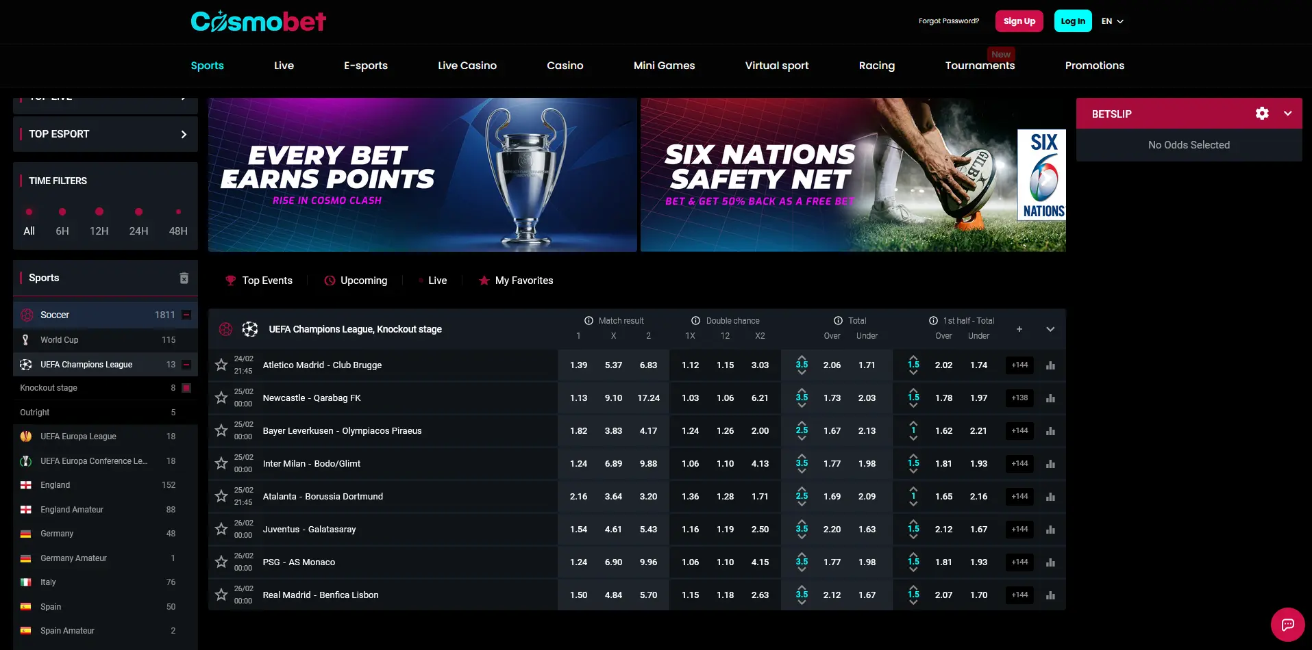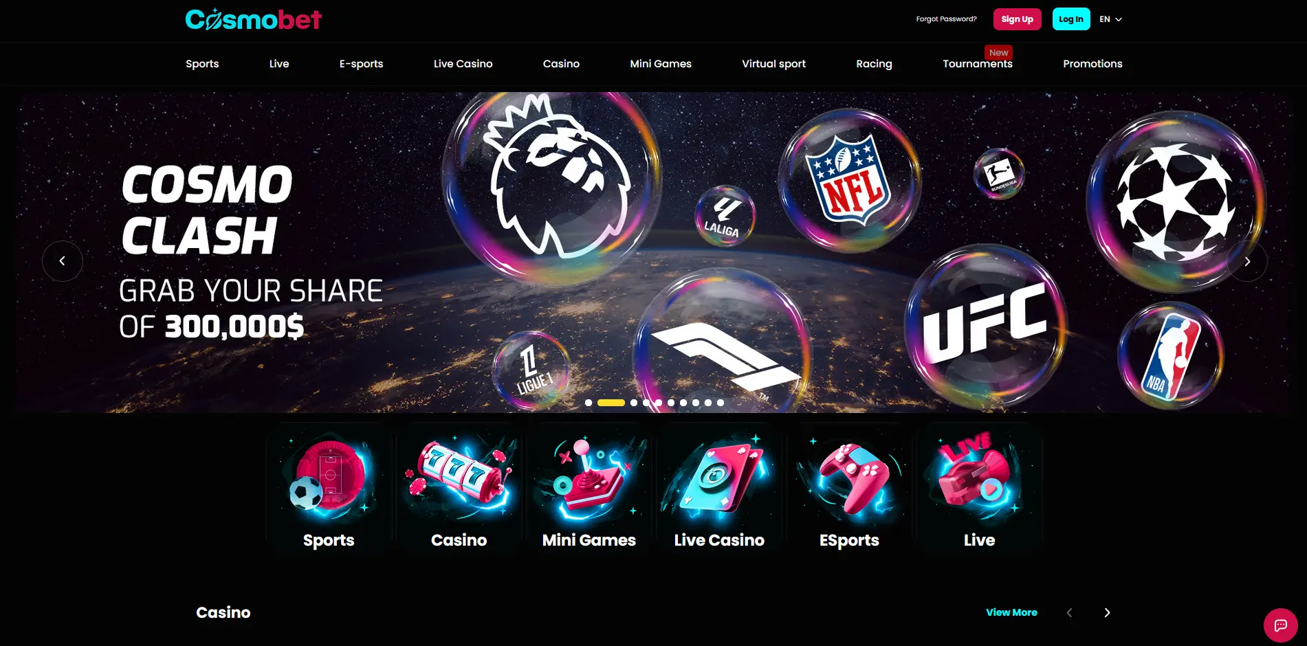 - Cosmo Clash tournament: Leaderboard challenge with a share prize of $300,000. To climb the leaderboard, you need to bet on eligible matches with the minimum odds of 1.65 per selection (one selection only). $1 bet equals 1 point. 1st place winner receives $2,500, 2nd place receives $1,500, and 3rd – $1,000. 4-20 place winners receive free bets worth from $100 to $900, depending on the place on the leaderboard. Freebets must be used on 2 selections with at least 1.65 odds for each.