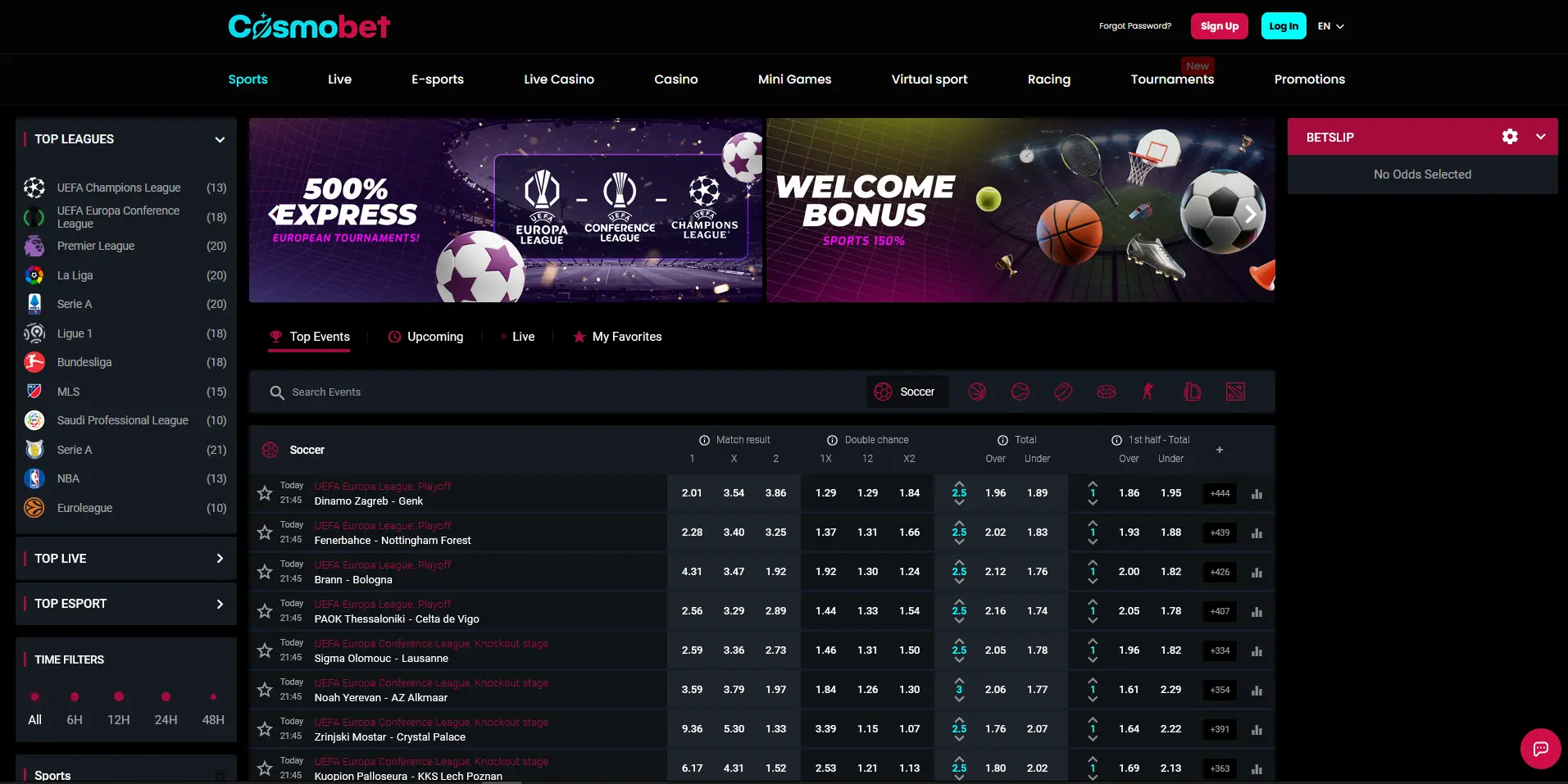 Football is clearly the backbone of Cosmobet’s sportsbook and offers betting on more than 1,700 matches from leagues, such as: