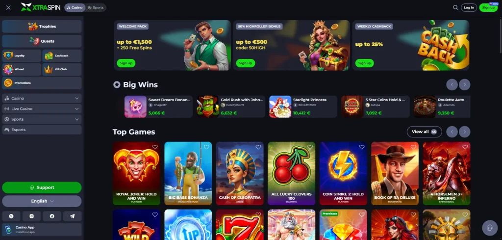 XtraSpin Casino has an enormous game library offering slots, table games, live dealer, and instant-win games.