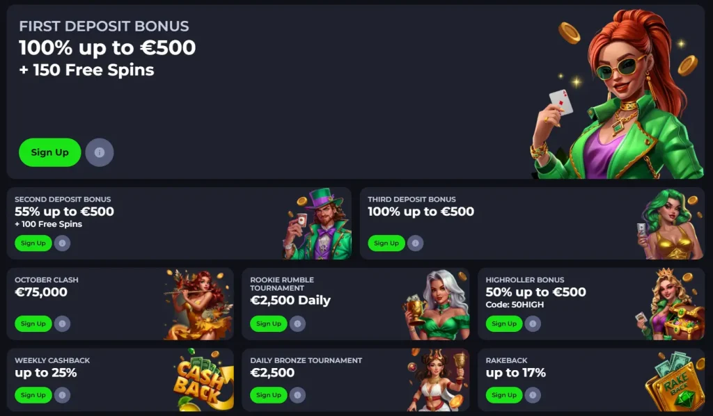 Bonuses & Promotions:Generous €1,500 + 250 Free Spins welcome package, plus weekly cashback, rakeback, and reload bonuses.